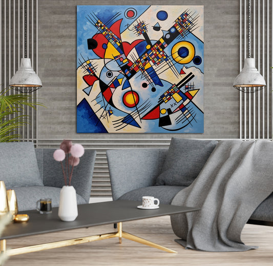 Cosmic Grid, heavily inspired by Constructivism and Bauhaus aesthetics, arranges crisp geometric shapes—circles, lines, and triangles—into a harmonious yet dynamic system. Its vivid primary colors and sense of celestial orchestration evoke universal order and scientific design. The genre is geometric abstraction, with technical precision and conceptual elegance. Enhance your décor...