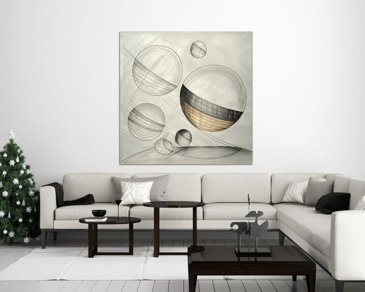 Spheres of Infinity is a graphite-like drawing showcasing lines with muted tones, portraying several floating spheres in a seemingly weightless space. Subtle shading and precise hatching techniques give a scientific clarity to the forms. It feels like a modern homage to technical illustration, situated at the intersection of minimalism and...