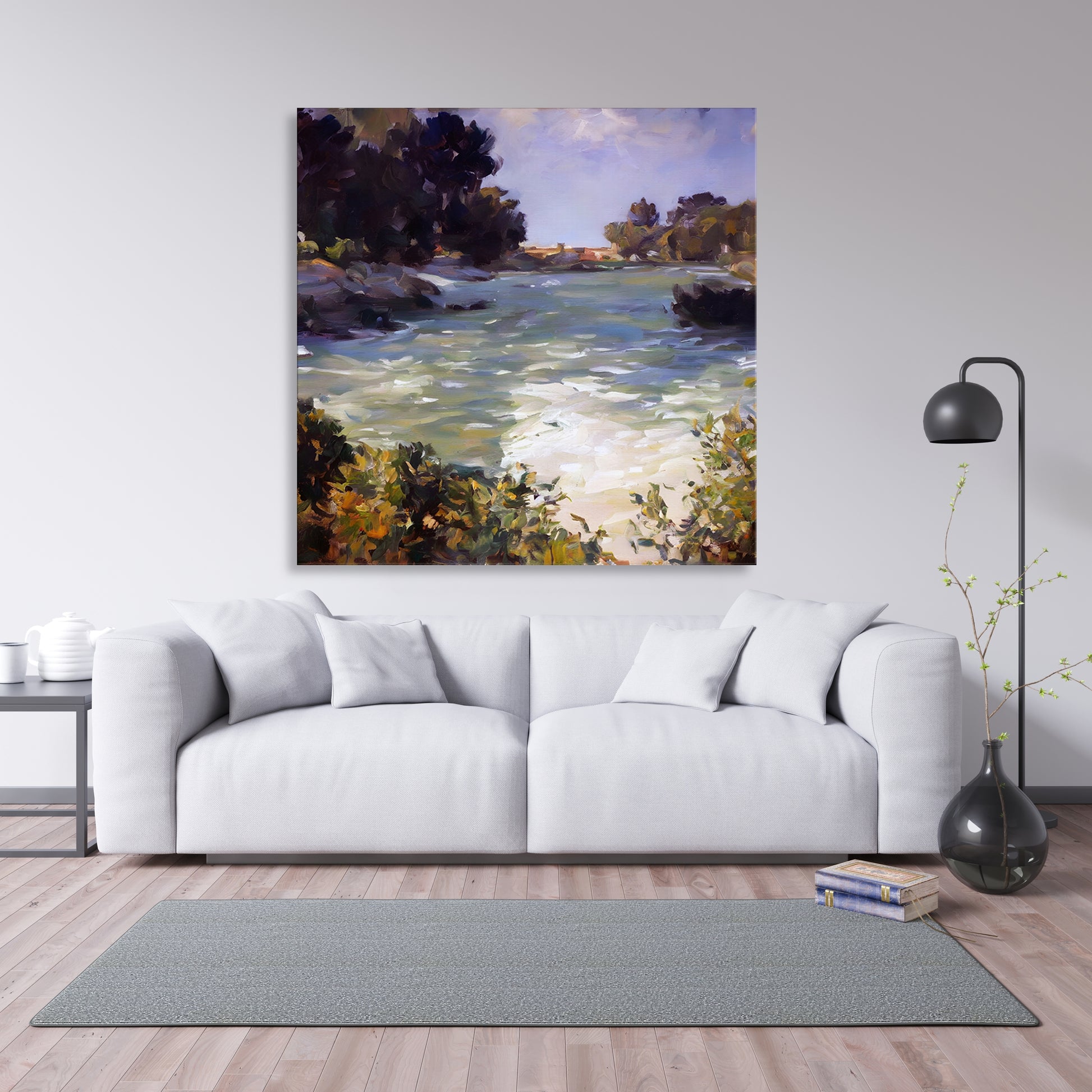 Along the River depicts a river landscape that leans more atmospheric, capturing a dynamic interplay of water, vegetation, and sky. The use of cooler greens and blues with purples in the foliage gives a sense of movement and seasonal change, perhaps late summer. The loose brushstrokes and vivid tonal contrasts reinforce the fleeting quality of light. This painting fits within modern impressionism, with an emphasis on natural light and color transitions. Enhance your décor today and bring this unique artwork into your home or office. This beautiful gallery wrapped canvas is the perfect addition to your favorite home or office space. This Original artwork is available only on Wayfair and comes in a variety of sizes allowing you to find what works best within your home or office. Each piece is printed on museum-grade canvas designed to stand the test of time. Durability, image clarity, and color accuracy are our top priorities, as we use archival inks to prevent fading and to preserve as much fine detail as possible with no over-saturation or color shifting. Our professional staff produce the tightest corners without any bubbles, ripples, or bumps, and include pre-installed hanging hardware for easy installation.