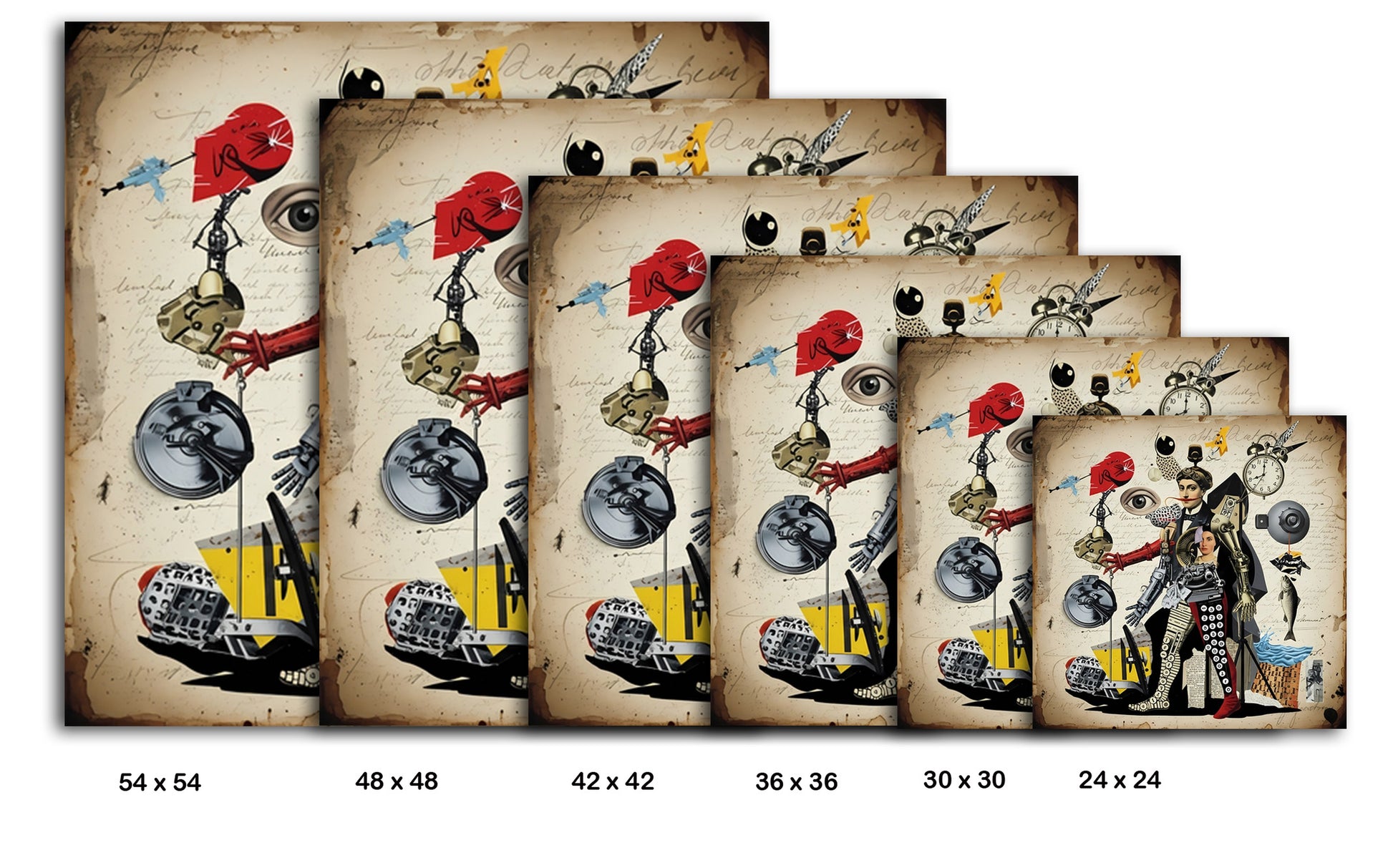 Anatomy of Invention is a surrealist collage featuring a hybrid human-machine figure composed of vintage machinery parts, dismembered dolls, and scientific illustrations. The central figure is surrounded by floating objects like eyes, fish, gears, and clocks, set against a sepia-toned parchment background with handwritten notes. This digital or mixed-media assemblage draws from Dada and surrealist traditions, blurring boundaries between anatomy, invention, and absurdity. The genre is surrealist collage, and the technique mixes digital photomontage with illustrative overlays, echoing themes of innovation, fragmentation, and surreal logic. Enhance your décor today and bring this unique artwork into your home or office. This beautiful gallery wrapped canvas is the perfect addition to your favorite home or office space. This Original artwork is available only on Wayfair and comes in a variety of sizes allowing you to find what works best within your home or office. Each piece is printed on museum-grade canvas designed to stand the test of time. Durability, image clarity, and color accuracy are our top priorities, as we use archival inks to prevent fading and to preserve as much fine detail as possible with no over-saturation or color shifting. Our professional staff produce the tightest corners without any bubbles, ripples, or bumps, and include pre-installed hanging hardware for easy installation.
