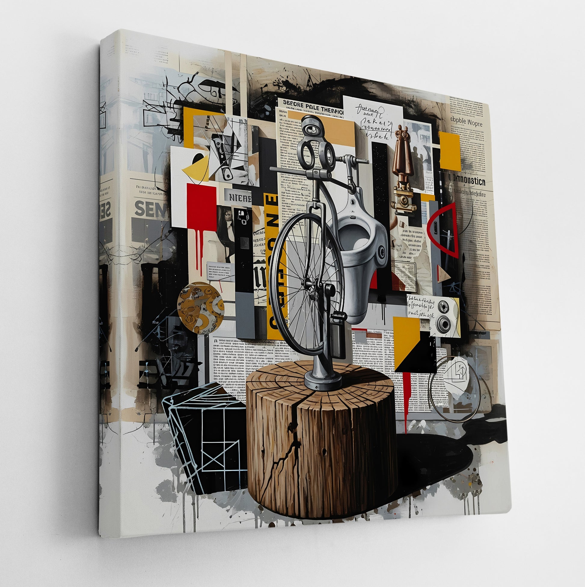 Anatomy of Nonsense is a dadaist collage that takes Duchampian influences to the extreme—featuring a urinal mounted like a monument, fused with a bicycle wheel atop a tree stump. Behind it, layers of newspaper clippings, mathematical diagrams, and abstract shapes create a backdrop of chaotic media and conceptual layers. Rendered in mixed media or digital simulation of it, the artwork critiques logic and function, embracing absurdity as aesthetic. Its genre lies in conceptual art and Dada, reflecting a rebellion against traditional form, sense, and institutional art values.Enhance your décor today and bring this unique artwork into your home or office. This beautiful gallery wrapped canvas is the perfect addition to your favorite home or office space. This Original artwork is available only on Wayfair and comes in a variety of sizes allowing you to find what works best within your home or office. Each piece is printed on museum-grade canvas designed to stand the test of time. Durability, image clarity, and color accuracy are our top priorities, as we use archival inks to prevent fading and to preserve as much fine detail as possible with no over-saturation or color shifting. Our professional staff produce the tightest corners without any bubbles, ripples, or bumps, and include pre-installed hanging hardware for easy installation.