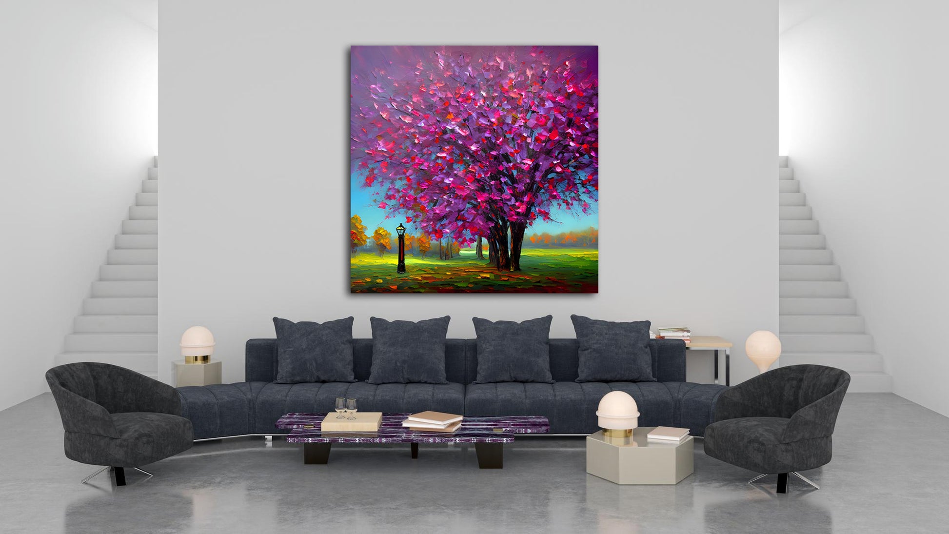 Blooming Sakura Tree explodes with vivid magenta and pinks, this romantic park scene centers around a blossoming sakura tree in full bloom. The impasto technique gives the foliage an almost sculptural texture, contrasting beautifully with the clean blue sky and soft green grass. Bold palette knife strokes lend the work a dynamic energy. This falls within the realm of contemporary impressionism or modern romantic landscape, celebrating natural beauty with a celebratory flourish. Enhance your décor today and bring this unique artwork into your home or office. This beautiful gallery wrapped canvas is the perfect addition to your favorite home or office space. This Original artwork is available only on Wayfair and comes in a variety of sizes allowing you to find what works best within your home or office. Each piece is printed on museum-grade canvas designed to stand the test of time. Durability, image clarity, and color accuracy are our top priorities, as we use archival inks to prevent fading and to preserve as much fine detail as possible with no over-saturation or color shifting. Our professional staff produce the tightest corners without any bubbles, ripples, or bumps, and include pre-installed hanging hardware for easy installation.
