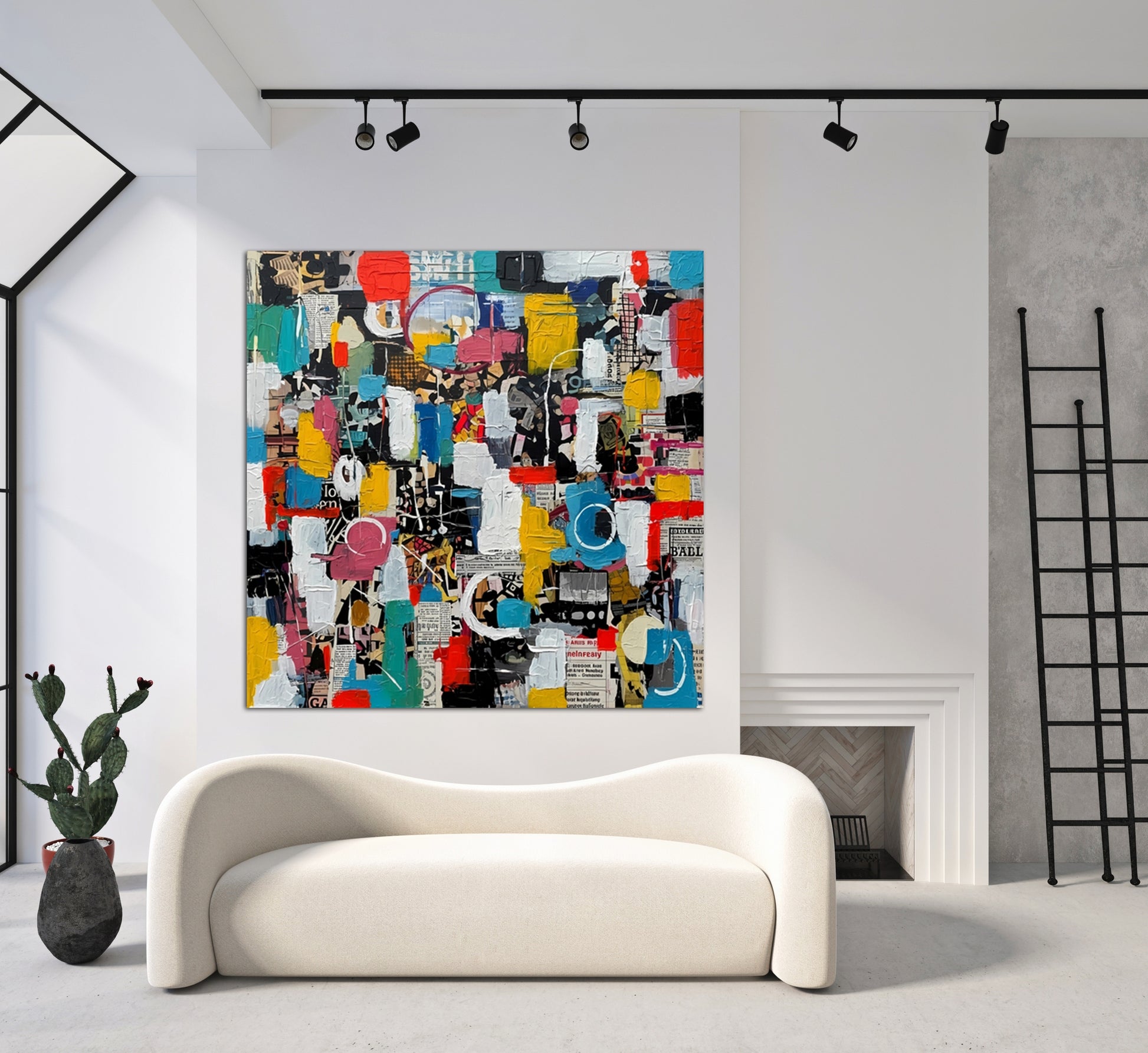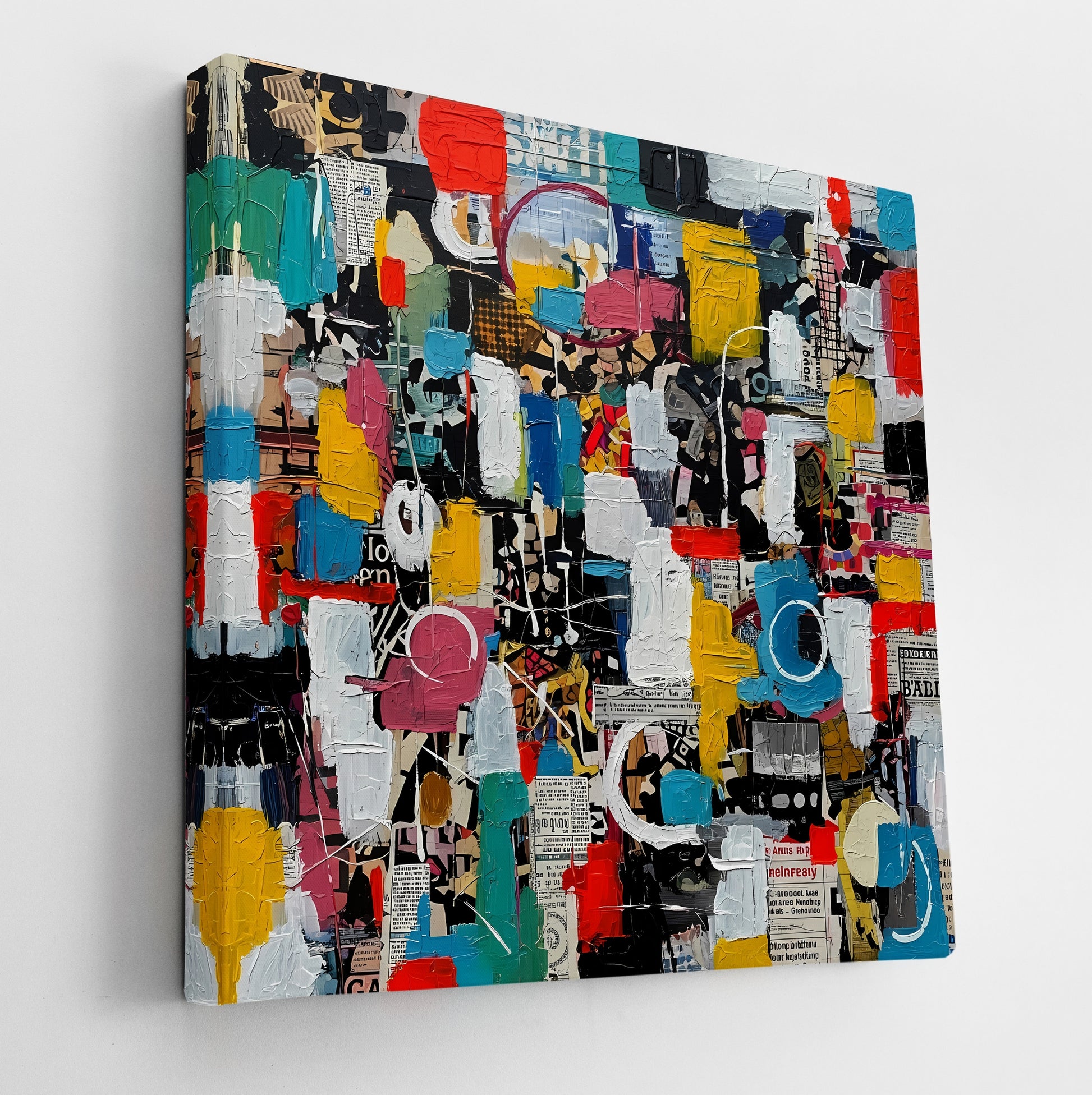 "Brutal Harmony" is a vivid and chaotic collage of newspaper textures, painted shapes, and layered text fragments. Blocks of red, yellow, turquoise, white, and black jostle for attention, with scribbles and circles bringing motion and confusion to the composition. The technique mixes collage and acrylic paint in a neo-Dadaist or street-art-inspired aesthetic. The genre is urban abstraction or mixed-media pop abstraction, capturing the overwhelming rhythm of media-saturated environments and fractured communication. Enhance your décor today and bring this unique artwork into your home or office. This beautiful gallery wrapped canvas is the perfect addition to your favorite home or office space. This Original artwork is available only on Wayfair and comes in a variety of sizes allowing you to find what works best within your home or office. Each piece is printed on museum-grade canvas designed to stand the test of time. Durability, image clarity, and color accuracy are our top priorities, as we use archival inks to prevent fading and to preserve as much fine detail as possible with no over-saturation or color shifting. Our professional staff produce the tightest corners without any bubbles, ripples, or bumps, and include pre-installed hanging hardware for easy installation.