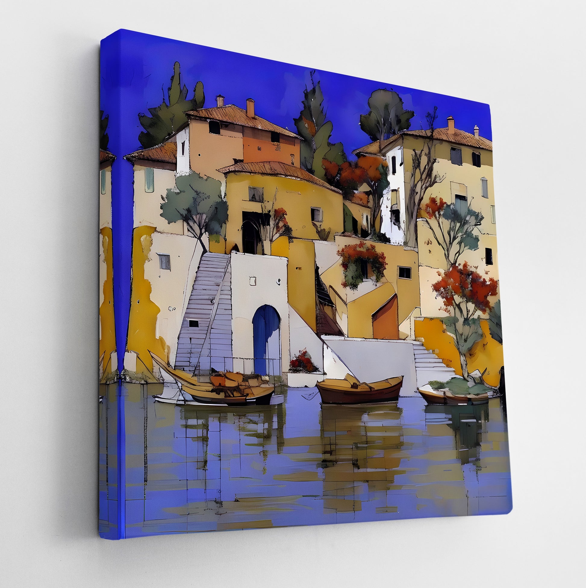 Cieloblu depicts a coastal village rendered in a warm Mediterranean palette of yellows, ochres, and terracottas, this piece shows an idyllic village descending into a reflective body of water. Crisp architectural lines are softened by delicate ink-like contouring and punctuated with bright floral accents. The style combines illustrative precision with watercolor sensibilities. The genre is coastal romanticism, invoking a tranquil life along sun-drenched shores. Enhance your décor today and bring this unique artwork into your home or office. This beautiful gallery wrapped canvas is the perfect addition to your favorite home or office space. This Original artwork is available only on Wayfair and comes in a variety of sizes allowing you to find what works best within your home or office. Each piece is printed on museum-grade canvas designed to stand the test of time. Durability, image clarity, and color accuracy are our top priorities, as we use archival inks to prevent fading and to preserve as much fine detail as possible with no over-saturation or color shifting. Our professional staff produce the tightest corners without any bubbles, ripples, or bumps, and include pre-installed hanging hardware for easy installation.