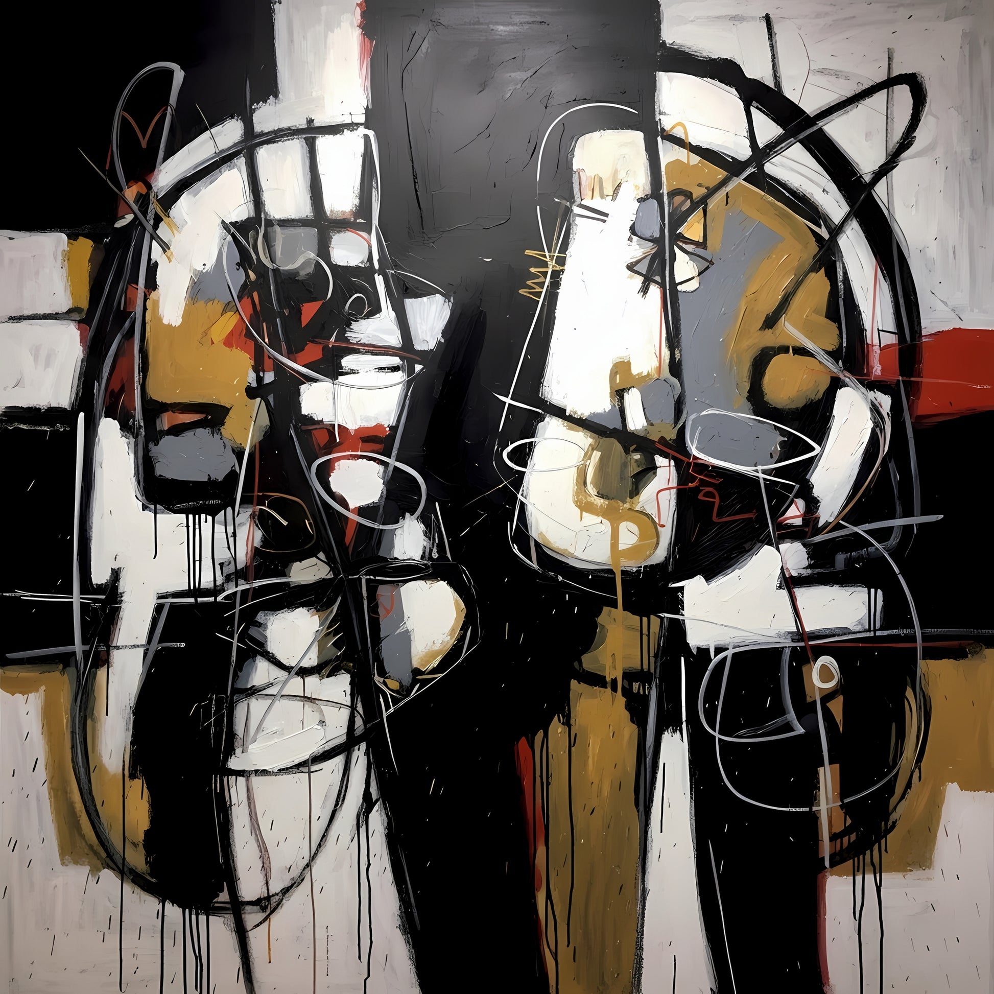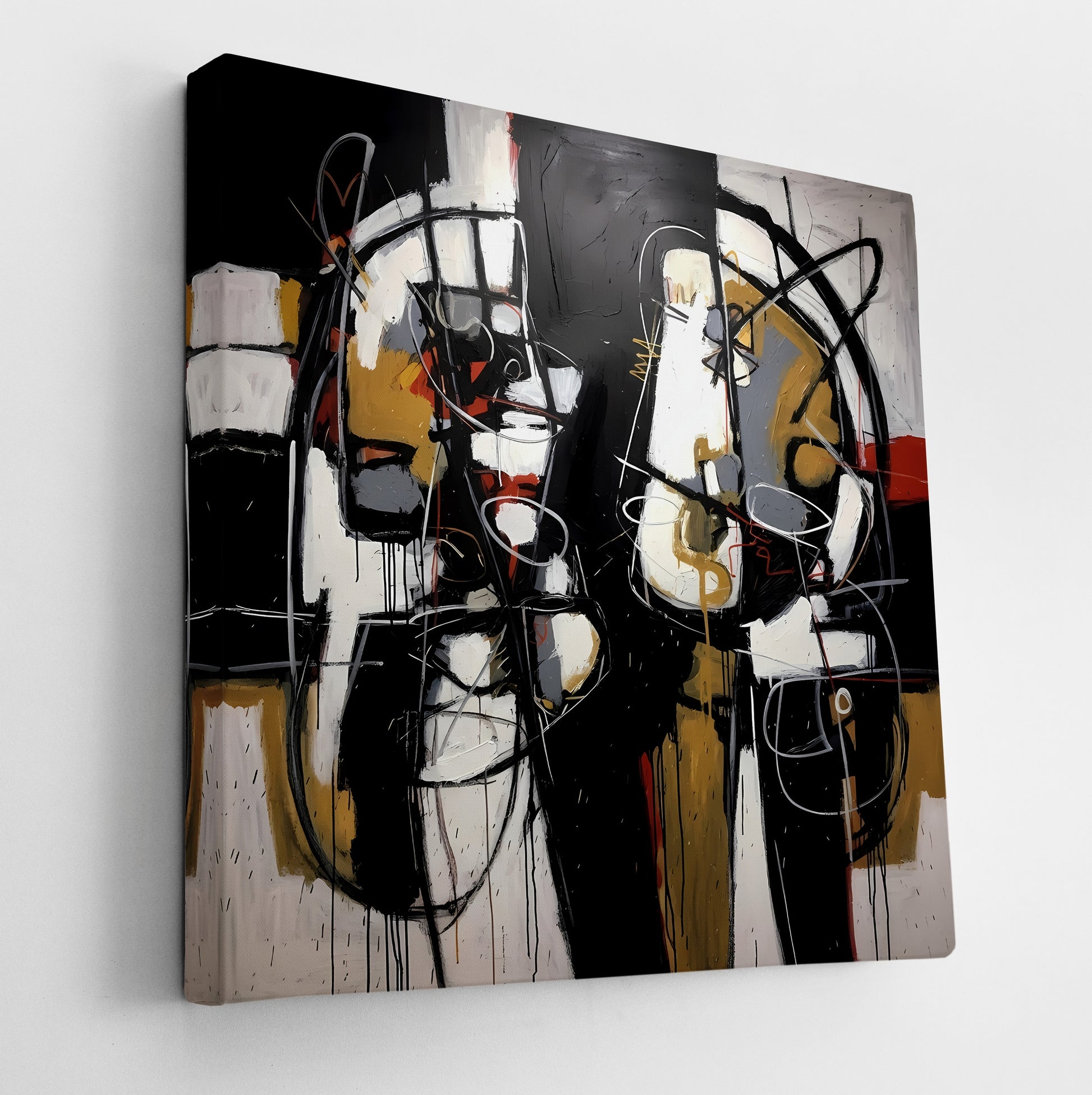 Confronting the Void showcases two mask-like abstracted figures emerging in confrontation, built from heavy black-and-white blocks and swirling, graffiti-like strokes in ochre, rust, and red. The figures seem to engage in a silent standoff, caught between expression and erasure. This emotionally charged piece falls into the realm of Neo-Expressionism and gestural abstraction, utilizing raw texture and stark contrasts to symbolize inner conflict and existential duality. Enhance your décor today and bring this unique artwork into your home or office. This beautiful gallery wrapped canvas is the perfect addition to your favorite home or office space. This Original artwork is available only on Wayfair and comes in a variety of sizes allowing you to find what works best within your home or office. Each piece is printed on museum-grade canvas designed to stand the test of time. Durability, image clarity, and color accuracy are our top priorities, as we use archival inks to prevent fading and to preserve as much fine detail as possible with no over-saturation or color shifting. Our professional staff produce the tightest corners without any bubbles, ripples, or bumps, and include pre-installed hanging hardware for easy installation.