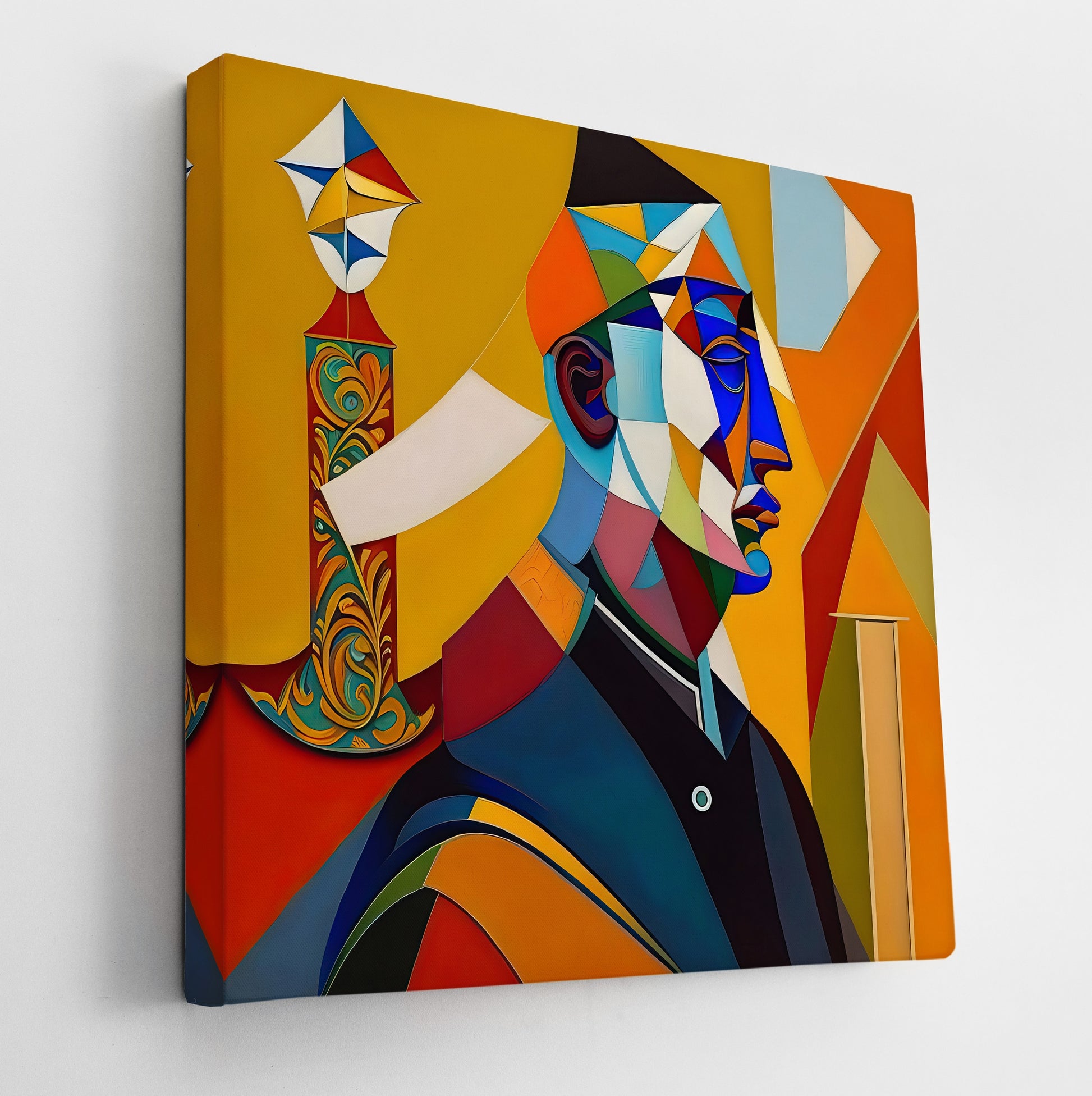 Deacon is a stylized portrait in bold, flat planes of color, with sharp contours and geometric simplification. The profile view, decorative background element, and warm palette allude to both Cubism and stained-glass design. This is a fine example of modern figurative abstraction with a nod to analytical cubism and Art Deco. Enhance your décor today and bring this unique artwork into your home or office. This beautiful gallery wrapped canvas is the perfect addition to your favorite home or office space. This Original artwork is available only on Wayfair and comes in a variety of sizes allowing you to find what works best within your home or office. Each piece is printed on museum-grade canvas designed to stand the test of time. Durability, image clarity, and color accuracy are our top priorities, as we use archival inks to prevent fading and to preserve as much fine detail as possible with no over-saturation or color shifting. Our professional staff produce the tightest corners without any bubbles, ripples, or bumps, and include pre-installed hanging hardware for easy installation.