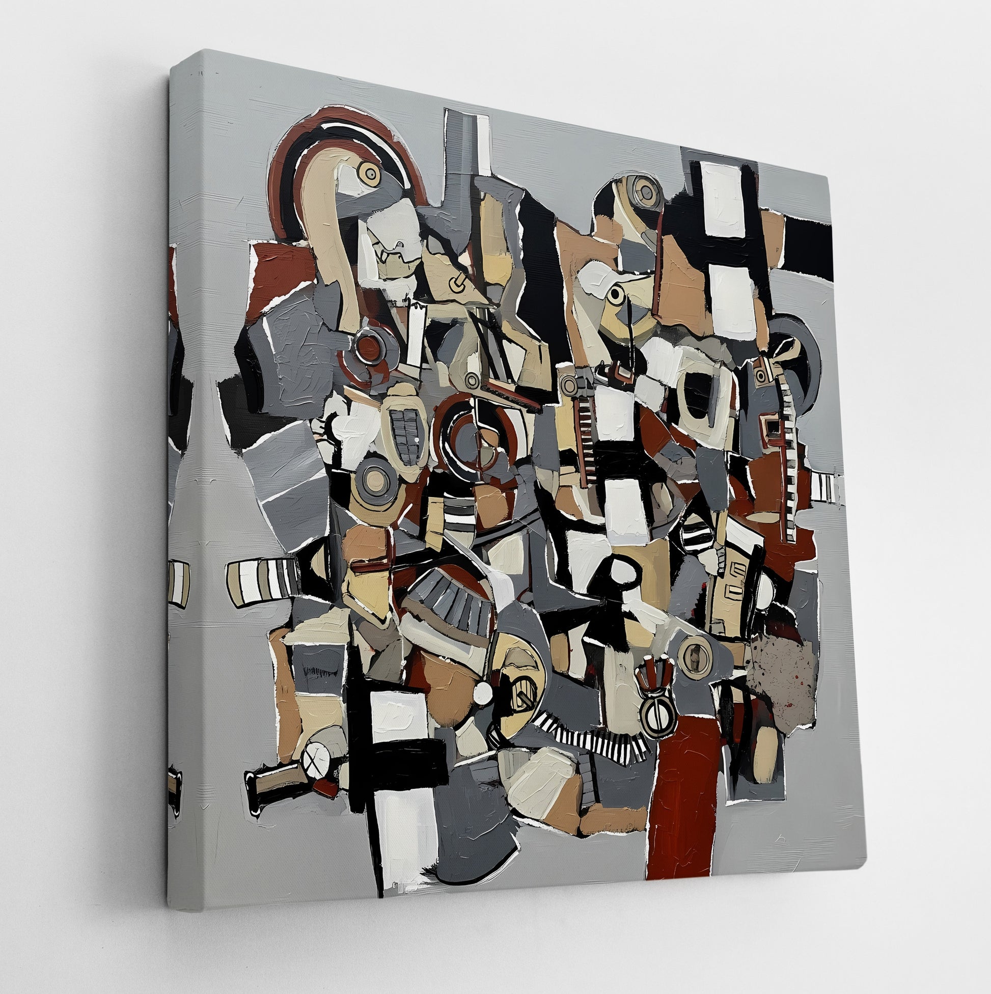 Decoding Balance is a dense, industrial-like abstract work composed of hard-edged shapes, wires, and mechanical motifs in earth tones and muted reds. The chaotic network of forms suggests a complex, interwoven system—perhaps societal, perhaps psychological. Rooted in Constructivism and abstract mechanical art, the piece speaks to the search for harmony amid engineered complexity. Enhance your décor today and bring this unique artwork into your home or office. This beautiful gallery wrapped canvas is the perfect addition to your favorite home or office space. This Original artwork is available only on Wayfair and comes in a variety of sizes allowing you to find what works best within your home or office. Each piece is printed on museum-grade canvas designed to stand the test of time. Durability, image clarity, and color accuracy are our top priorities, as we use archival inks to prevent fading and to preserve as much fine detail as possible with no over-saturation or color shifting. Our professional staff produce the tightest corners without any bubbles, ripples, or bumps, and include pre-installed hanging hardware for easy installation.