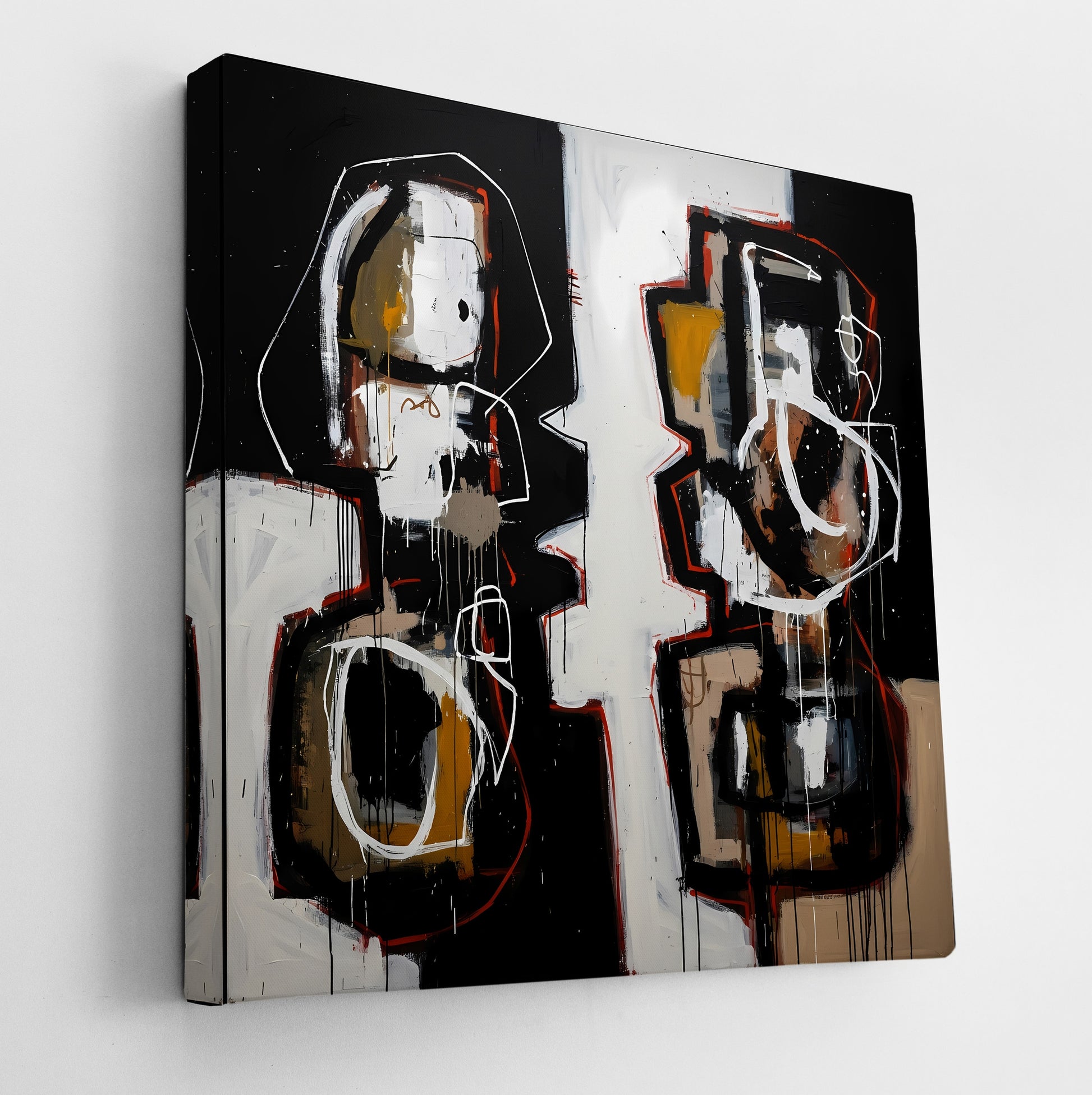 Echoes in Contrast is an emotionally resonant work featuring two large formsâ€â€resembling human figuresâ€â€facing each other in silhouette across a stark vertical division. White, ochre, and brown strokes swirl around their forms, while drips and rough outlines emphasize volatility. The piece explores duality and internal conflict, and is best categorized under Neo-Expressionism. Enhance your décor today and bring this unique artwork into your home or office. This beautiful gallery wrapped canvas is the perfect addition to your favorite home or office space. This Original artwork is available only on Wayfair and comes in a variety of sizes allowing you to find what works best within your home or office. Each piece is printed on museum-grade canvas designed to stand the test of time. Durability, image clarity, and color accuracy are our top priorities, as we use archival inks to prevent fading and to preserve as much fine detail as possible with no over-saturation or color shifting. Our professional staff produce the tightest corners without any bubbles, ripples, or bumps, and include pre-installed hanging hardware for easy installation.