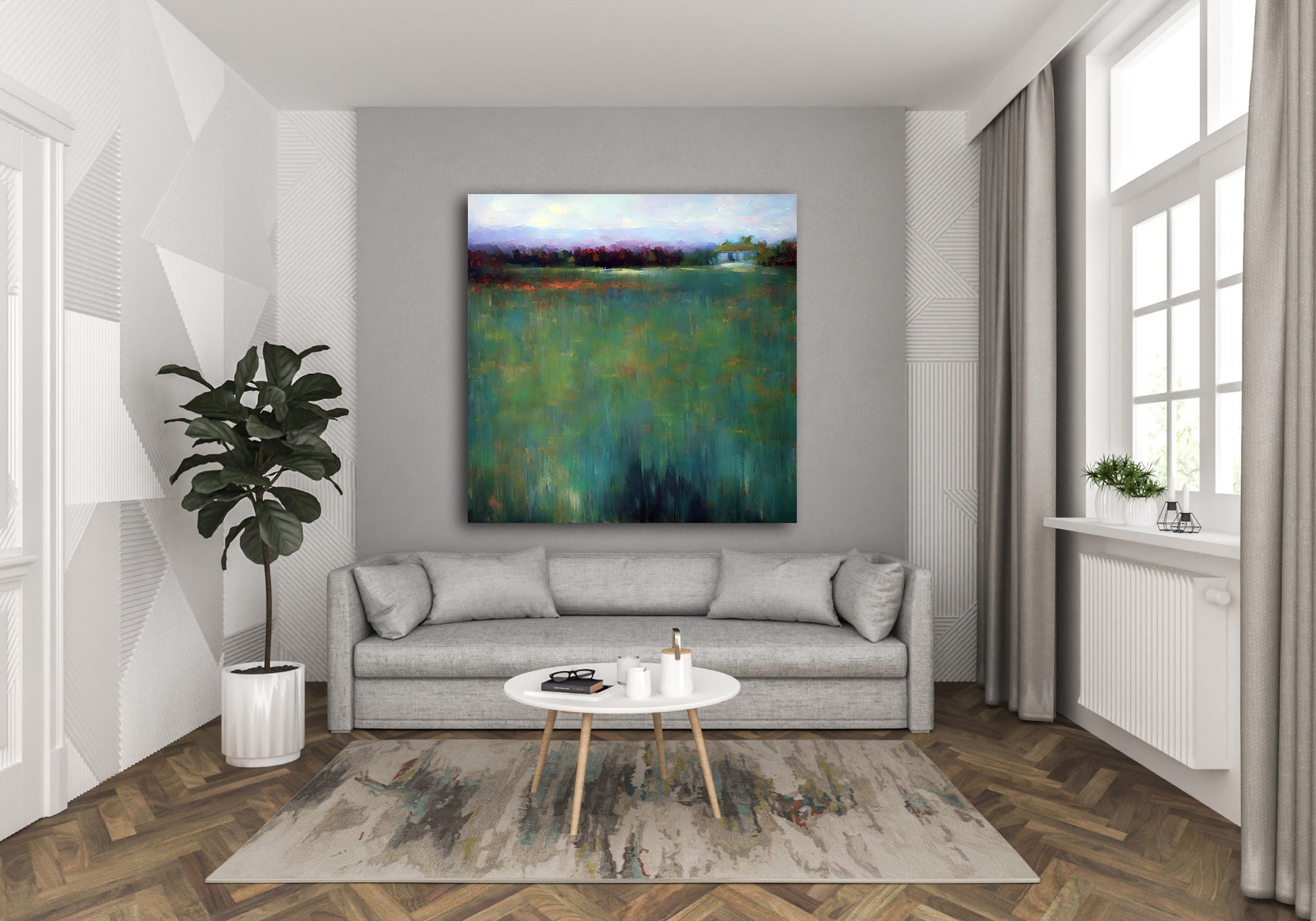 Field of Dreams I is a serene, ethereal landscape painted in soft, atmospheric tones. The blurred horizon, violet haze, and distant barn suggest a dreamlike countryside. The abstract brushstrokes create a gentle, meditative field of green, making this a quintessential example of abstract impressionism. The work uses subtle gradients and tonal blending to express mood over detail. Enhance your décor today and bring this unique artwork into your home or office. This beautiful gallery wrapped canvas is the perfect addition to your favorite home or office space. This Original artwork is available only on Wayfair and comes in a variety of sizes allowing you to find what works best within your home or office. Each piece is printed on museum-grade canvas designed to stand the test of time. Durability, image clarity, and color accuracy are our top priorities, as we use archival inks to prevent fading and to preserve as much fine detail as possible with no over-saturation or color shifting. Our professional staff produce the tightest corners without any bubbles, ripples, or bumps, and include pre-installed hanging hardware for easy installation.