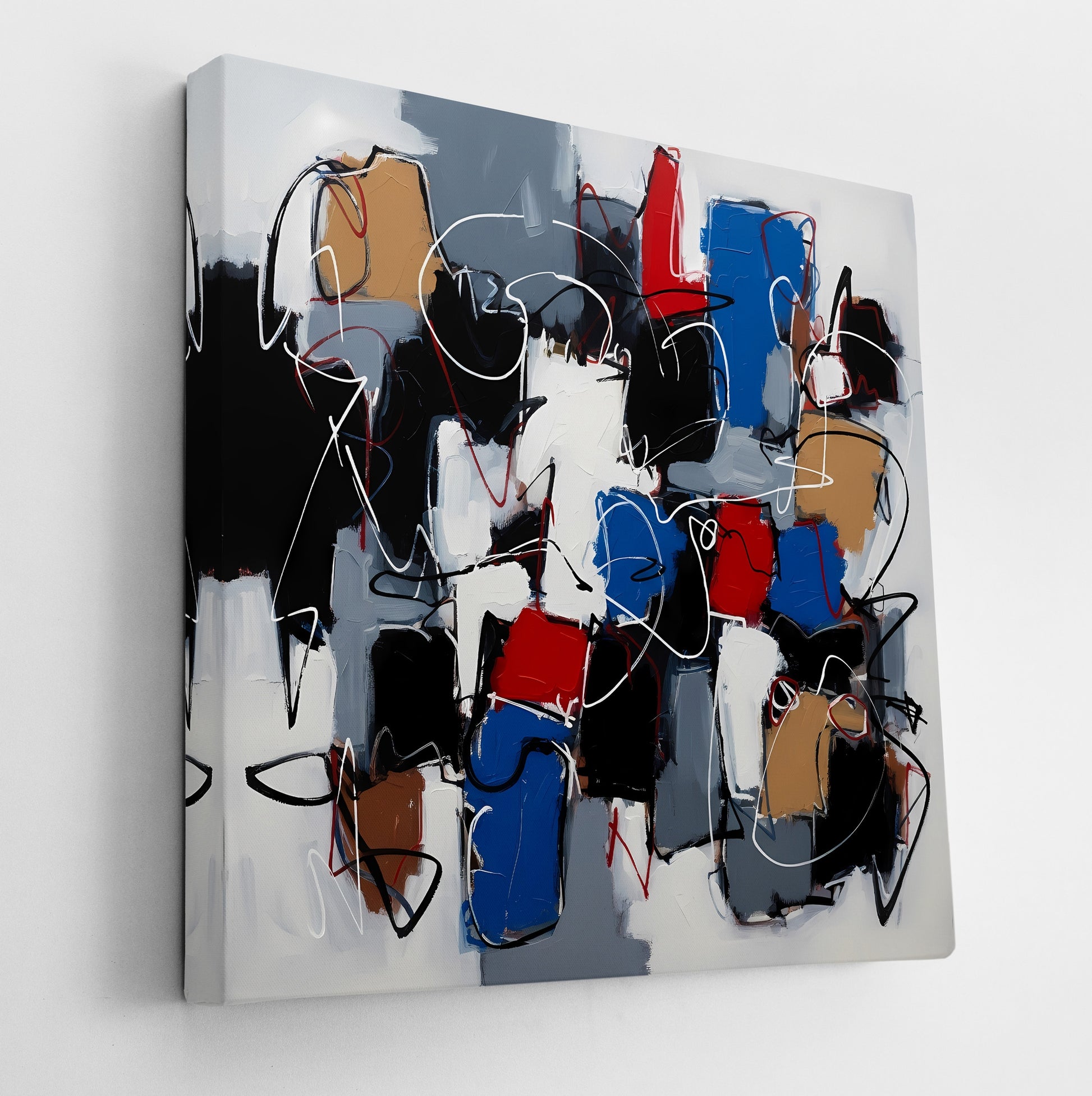 Ghost Lines exhibits a turbulent dance of color fields and gestural lines, Ghost Lines is steeped in dynamic abstraction. The loose forms of red, white, black, camel, and blue pulse with life beneath a network of sharp, erratic lines. The work suggests an intuitive layering of paint and line in the vein of abstract expressionism, evoking emotion and internal conflict through color harmony and chaos. Enhance your décor today and bring this unique artwork into your home or office. This beautiful gallery wrapped canvas is the perfect addition to your favorite home or office space. This Original artwork is available only on Wayfair and comes in a variety of sizes allowing you to find what works best within your home or office. Each piece is printed on museum-grade canvas designed to stand the test of time. Durability, image clarity, and color accuracy are our top priorities, as we use archival inks to prevent fading and to preserve as much fine detail as possible with no over-saturation or color shifting. Our professional staff produce the tightest corners without any bubbles, ripples, or bumps, and include pre-installed hanging hardware for easy installation.