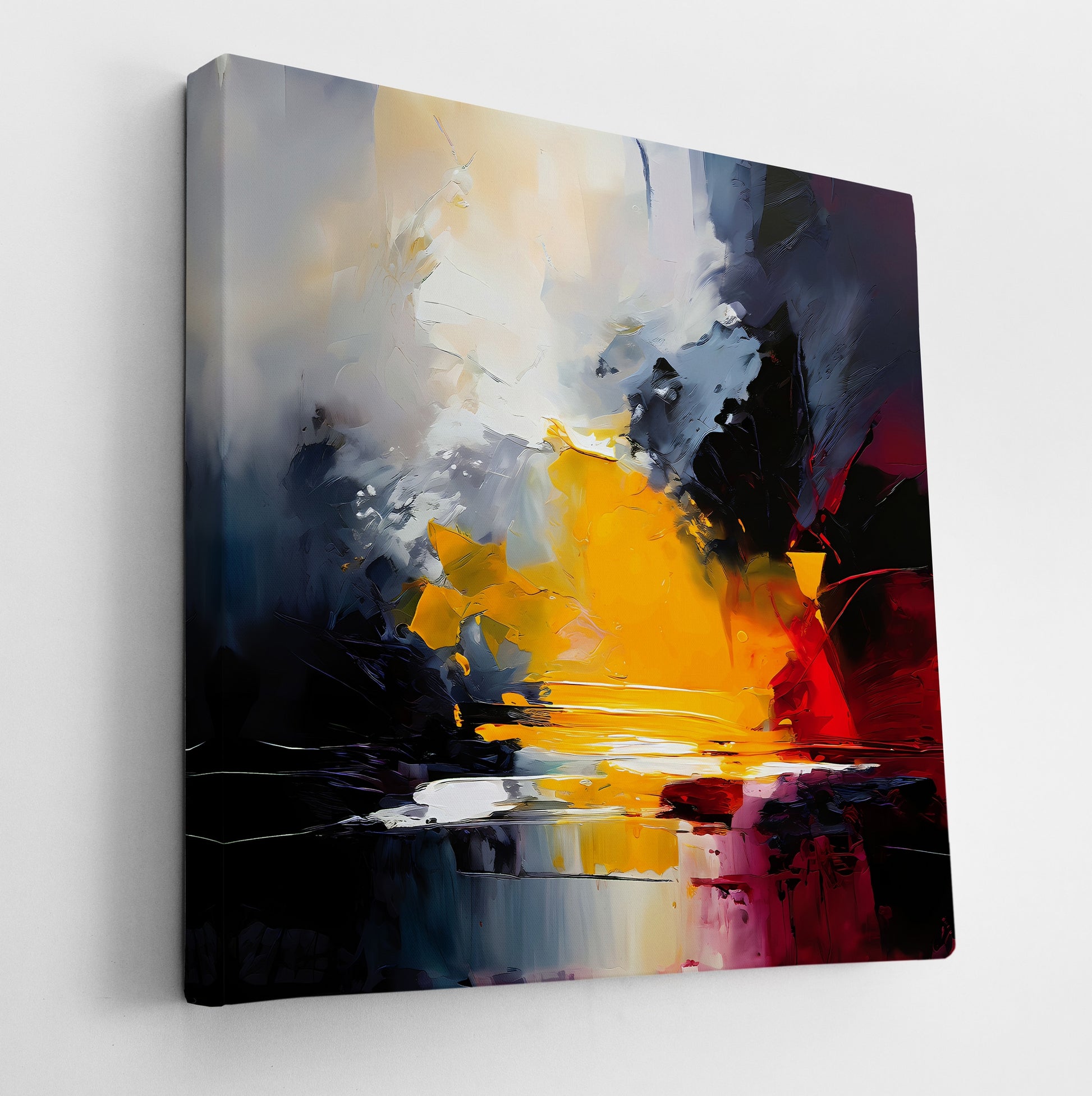 Golden Rays is a radiant abstract painting where vivid yellow light bursts through a sea of dark, moody hues. Heavy impasto and palette knife techniques produce texture and drama, suggesting both a sunrise and emotional catharsis. The genre is dynamic abstract, rich with energy and symbolism. Enhance your décor today and bring this unique artwork into your home or office. This beautiful gallery wrapped canvas is the perfect addition to your favorite home or office space. This Original artwork is available only on Wayfair and comes in a variety of sizes allowing you to find what works best within your home or office. Each piece is printed on museum-grade canvas designed to stand the test of time. Durability, image clarity, and color accuracy are our top priorities, as we use archival inks to prevent fading and to preserve as much fine detail as possible with no over-saturation or color shifting. Our professional staff produce the tightest corners without any bubbles, ripples, or bumps, and include pre-installed hanging hardware for easy installation.