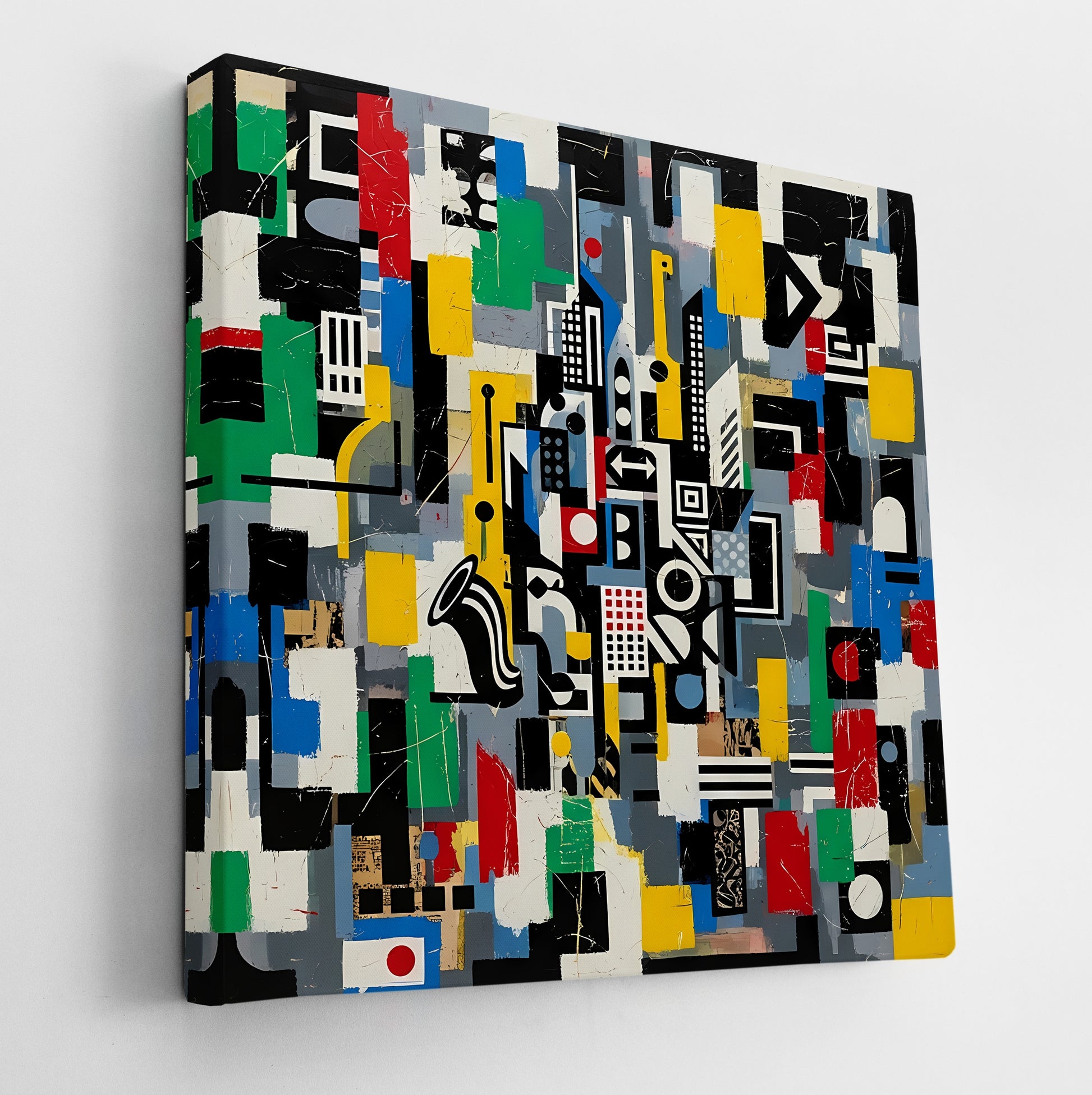 Metropolitan Jazzscape is a dynamic composition pulsating with urban rhythm and improvisational flair, echoing the syncopated energy of a jazz performance. Through a patchwork of color blocks, architectural silhouettes, and abstract motifs, the piece evokes a bustling city layered with movement and sound. The style blends modernist abstraction with elements of pop and urban collage. Bold colorsâ€â€primary reds, yellows, blues, and greensâ€â€anchor the composition while scattered graphic forms suggest signage, instruments, and city lights. Executed with sharp edges and clean overlays, the work falls into the genre of abstract urban expressionism. Enhance your décor today and bring this unique artwork into your home or office. This beautiful gallery wrapped canvas is the perfect addition to your favorite home or office space. This Original artwork is available only on Wayfair and comes in a variety of sizes allowing you to find what works best within your home or office. Each piece is printed on museum-grade canvas designed to stand the test of time. Durability, image clarity, and color accuracy are our top priorities, as we use archival inks to prevent fading and to preserve as much fine detail as possible with no over-saturation or color shifting. Our professional staff produce the tightest corners without any bubbles, ripples, or bumps, and include pre-installed hanging hardware for easy installation.