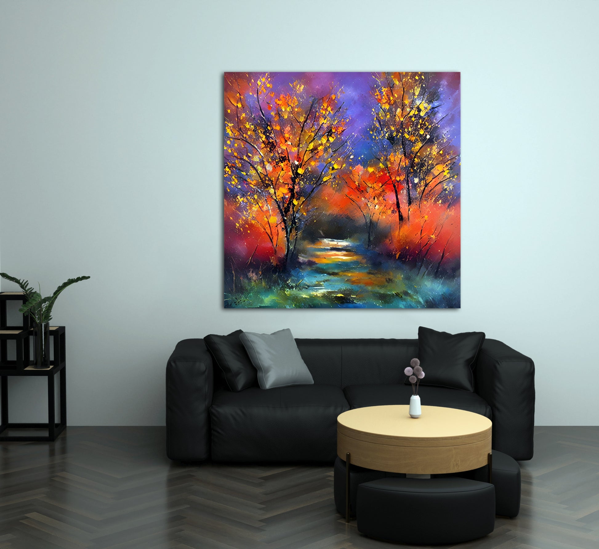 October River depicts an autumn forest blazing with saturated reds, oranges, and golds under a twilight sky of violet and blue. The trees are rendered with expressive, almost explosive strokes, while a glowing path leads the viewer into the heart of the composition. The painting celebrates color and movement, using impasto and wet blending techniques. This piece sits firmly within contemporary expressionism, conveying both the beauty and the intensity of seasonal transformation. Enhance your décor today and bring this unique artwork into your home or office. This beautiful gallery wrapped canvas is the perfect addition to your favorite home or office space. This Original artwork is available only on Wayfair and comes in a variety of sizes allowing you to find what works best within your home or office. Each piece is printed on museum-grade canvas designed to stand the test of time. Durability, image clarity, and color accuracy are our top priorities, as we use archival inks to prevent fading and to preserve as much fine detail as possible with no over-saturation or color shifting. Our professional staff produce the tightest corners without any bubbles, ripples, or bumps, and include pre-installed hanging hardware for easy installation.