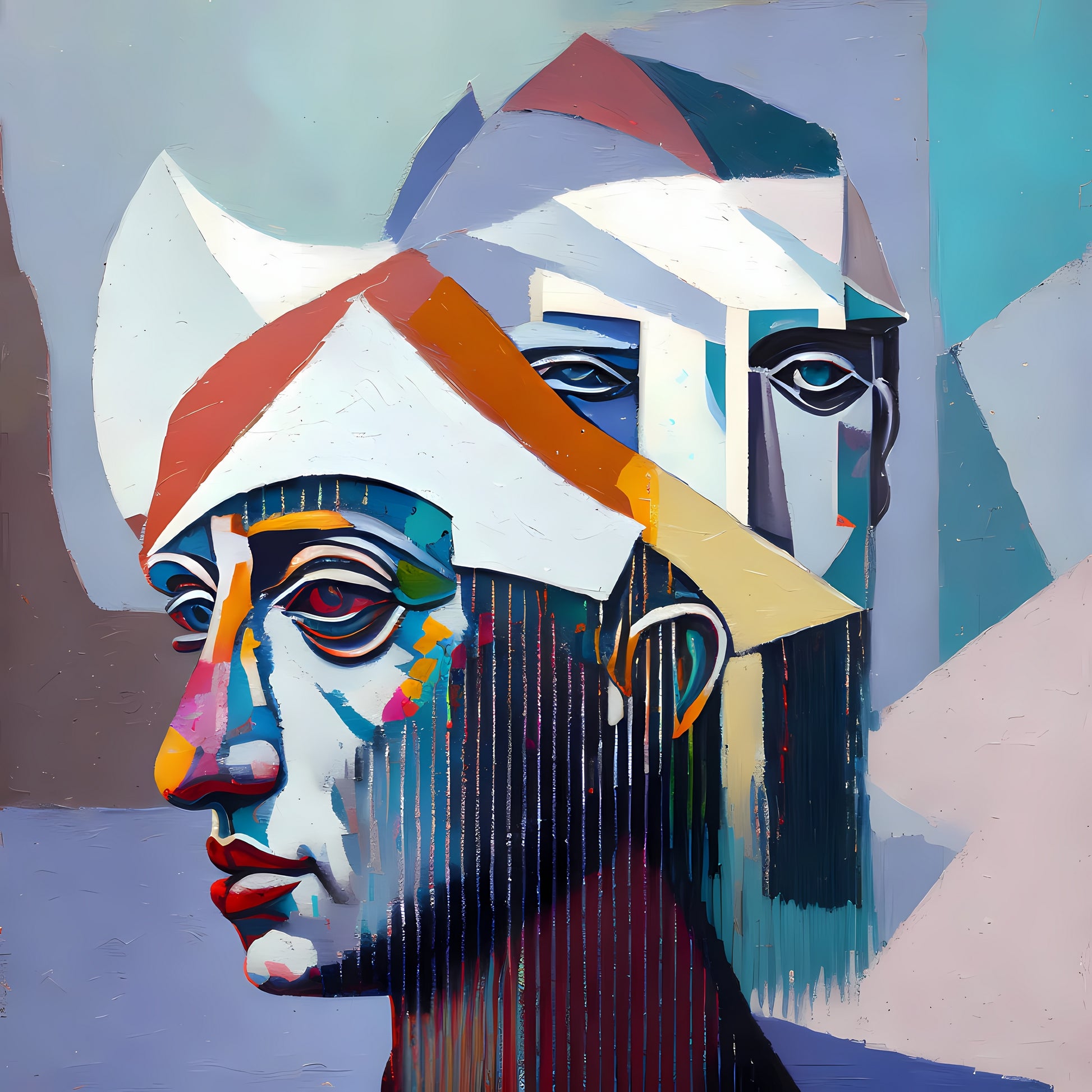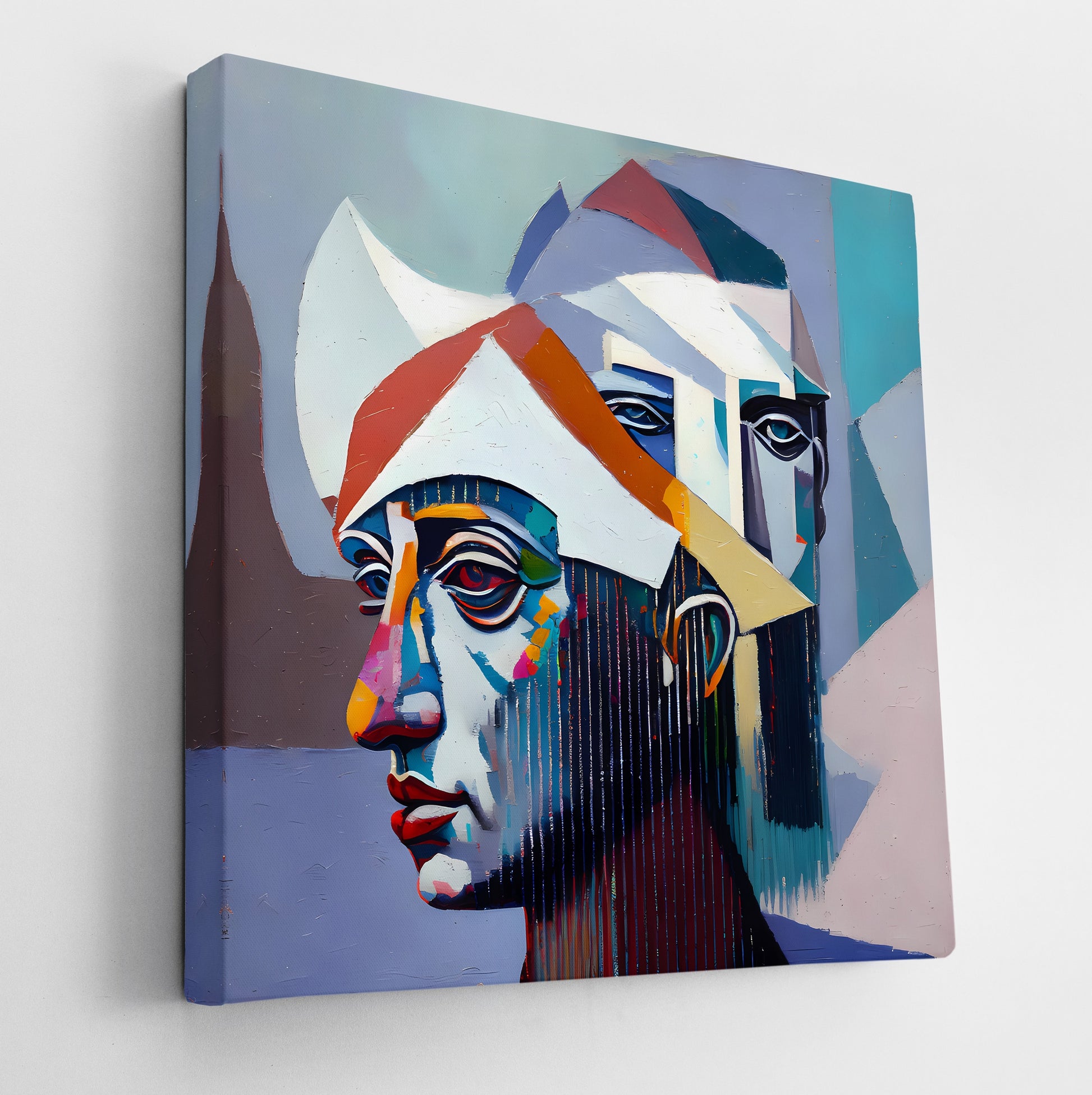 On the Back of My Mind is a layered portrait of abstracted faces that emerge through intersecting planes and sharp edges. The composition suggests multiple viewpoints and psychological depth, with cool blues and warm neutrals structured into faceted surfaces. The linear drips and sharp angular forms are techniques associated with contemporary cubism and geometric abstraction, giving this figurative modernist piece a meditative and conceptual edge. Enhance your décor today and bring this unique artwork into your home or office. This beautiful gallery wrapped canvas is the perfect addition to your favorite home or office space. This Original artwork is available only on Wayfair and comes in a variety of sizes allowing you to find what works best within your home or office. Each piece is printed on museum-grade canvas designed to stand the test of time. Durability, image clarity, and color accuracy are our top priorities, as we use archival inks to prevent fading and to preserve as much fine detail as possible with no over-saturation or color shifting. Our professional staff produce the tightest corners without any bubbles, ripples, or bumps, and include pre-installed hanging hardware for easy installation.