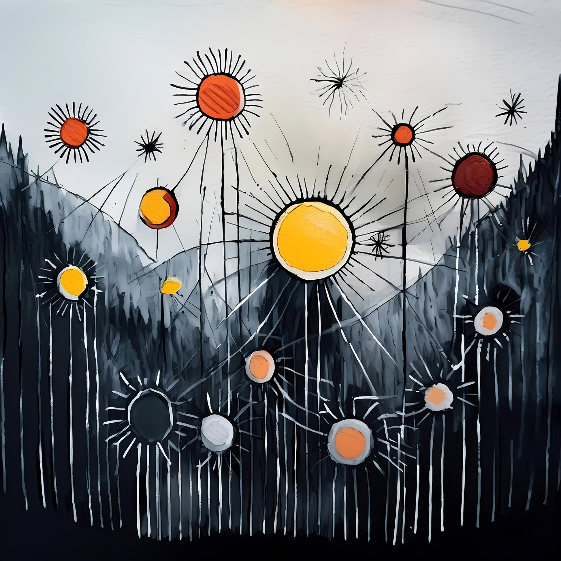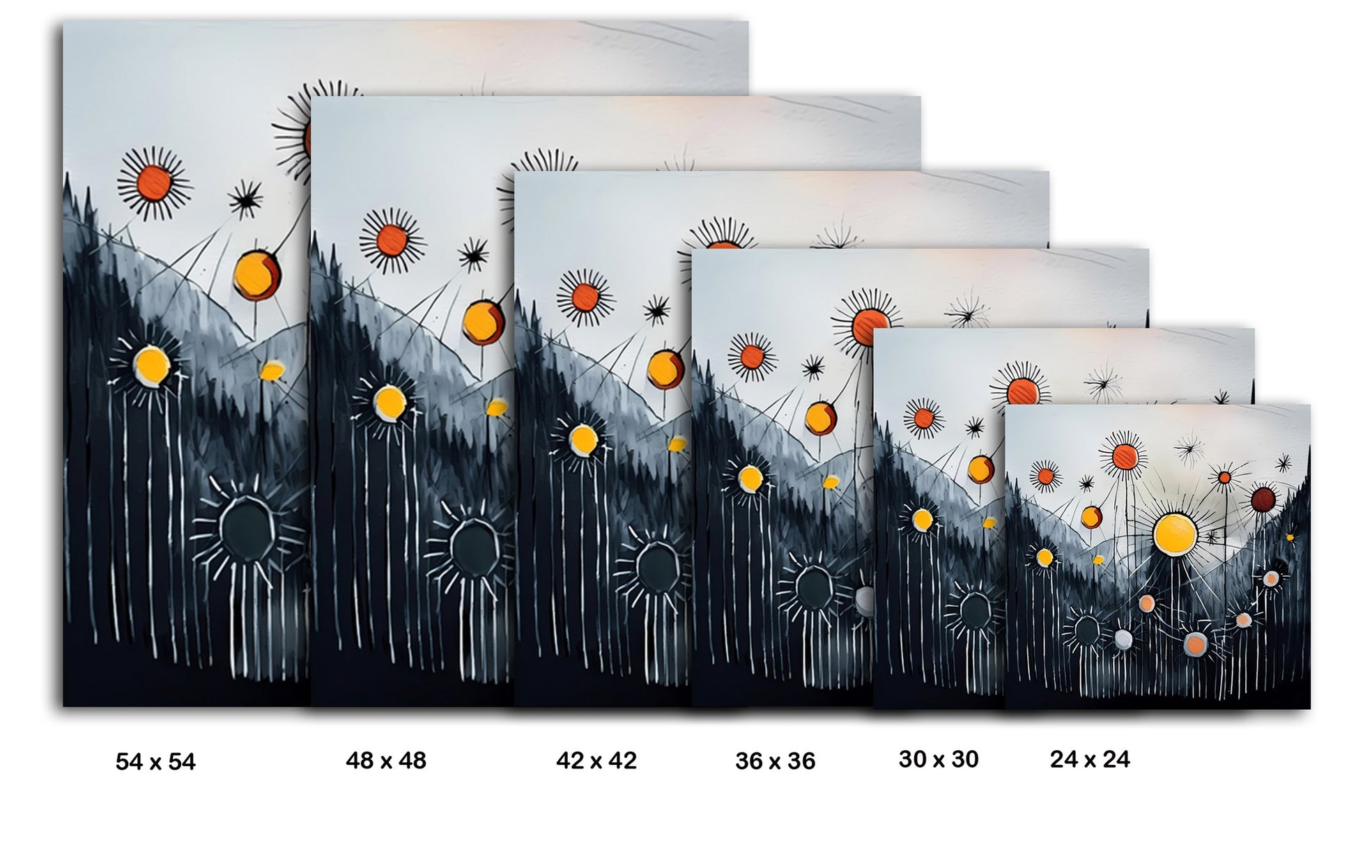 Stellar Pulse depicts radiating circular suns or starbursts lighting up a charcoal-toned mountain valley, connected by fine lines that resemble energy pulses or constellations. The central yellow sphere feels alive—perhaps symbolizing vitality or celestial rhythm. The style blends abstract expressionism with cosmic surrealism, evoking interconnectedness, light, and energy. Enhance your décor today and bring this unique artwork into your home or office. This beautiful gallery wrapped canvas is the perfect addition to your favorite home or office space. This Original artwork is available only on Wayfair and comes in a variety of sizes allowing you to find what works best within your home or office. Each piece is printed on museum-grade canvas designed to stand the test of time. Durability, image clarity, and color accuracy are our top priorities, as we use archival inks to prevent fading and to preserve as much fine detail as possible with no over-saturation or color shifting. Our professional staff produce the tightest corners without any bubbles, ripples, or bumps, and include pre-installed hanging hardware for easy installation.
