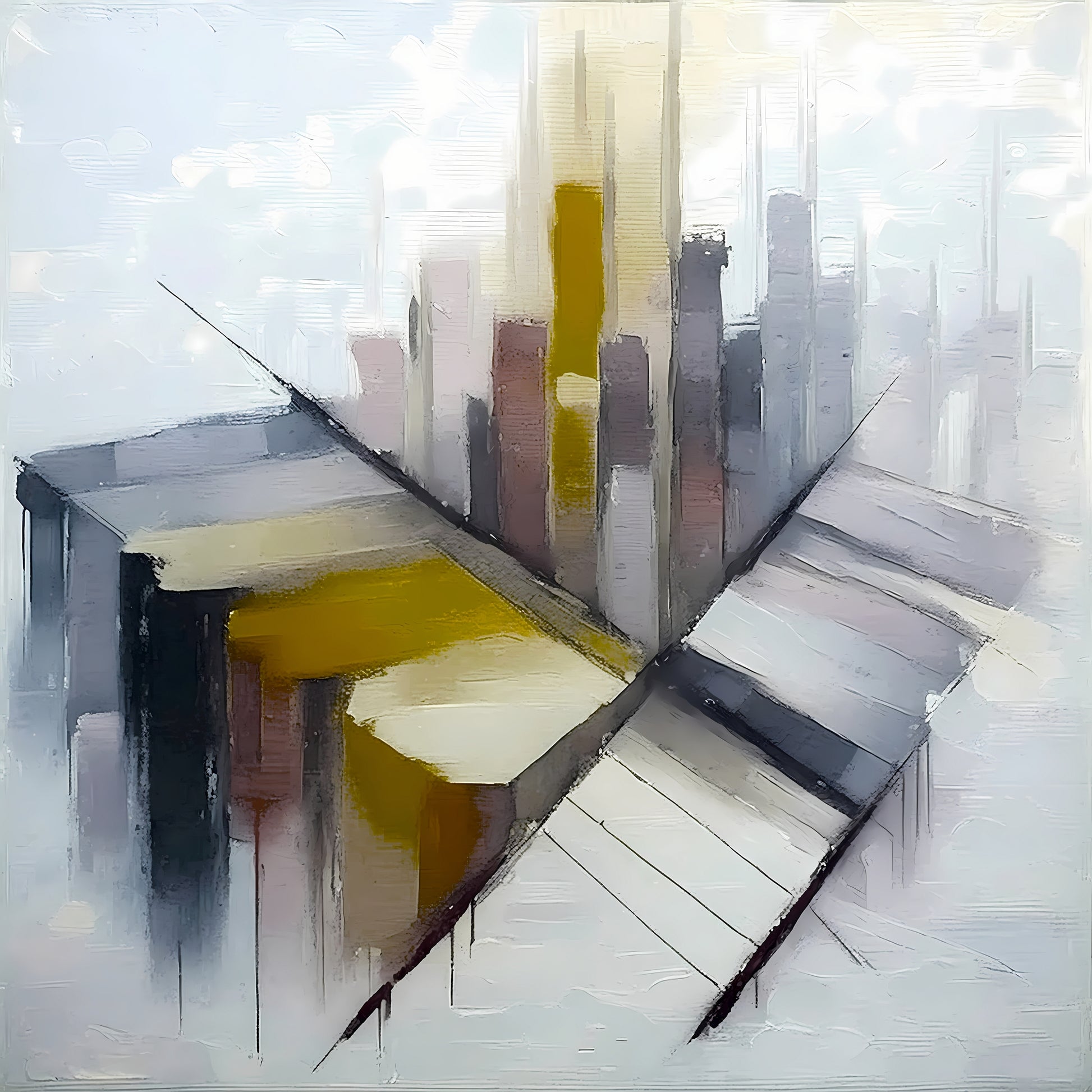 Urban Mirage is Composed of angled shapes and ghostly forms, this abstracted cityscape blends muted whites, grays, and soft ochres into a fractured vision of a metropolitan skyline. Vertical motion suggests rising buildings, while intersecting diagonal planes imply structural tension or expansion. The style belongs to architectural abstraction—intellectual, spatially dynamic, and introspective. Enhance your décor today and bring this unique artwork into your home or office. This beautiful gallery wrapped canvas is the perfect addition to your favorite home or office space. This Original artwork is available only on Wayfair and comes in a variety of sizes allowing you to find what works best within your home or office. Each piece is printed on museum-grade canvas designed to stand the test of time. Durability, image clarity, and color accuracy are our top priorities, as we use archival inks to prevent fading and to preserve as much fine detail as possible with no over-saturation or color shifting. Our professional staff produce the tightest corners without any bubbles, ripples, or bumps, and include pre-installed hanging hardware for easy installation.