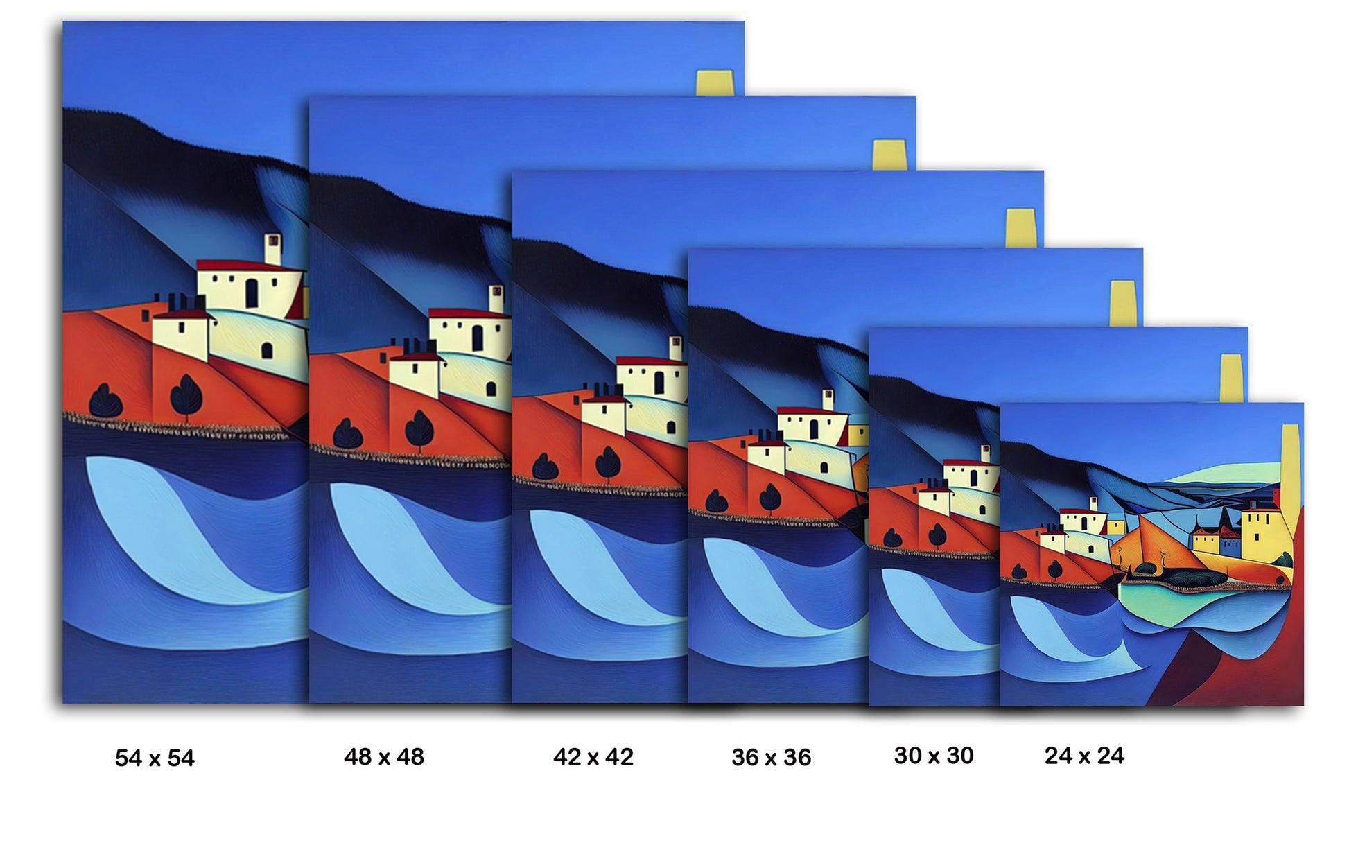 Waterfront Village fuses cubist structure with bold modernist flair. Villages are rendered in overlapping flat planes of primary colors, and the sky and sea swirl in abstract curves and geometric motifs. The stylized sailboats and rooftops hint at a harbor scene, but the narrative remains interpretive. The technique is digital or vector-based, using sharp edges and strong color blocking. The genre sits between modernist abstraction and neo-cubism, with a playful, graphic sensibility. Enhance your décor today and bring this unique artwork into your home or office. This beautiful gallery wrapped canvas is the perfect addition to your favorite home or office space. This Original artwork is available only on Wayfair and comes in a variety of sizes allowing you to find what works best within your home or office. Each piece is printed on museum-grade canvas designed to stand the test of time. Durability, image clarity, and color accuracy are our top priorities, as we use archival inks to prevent fading and to preserve as much fine detail as possible with no over-saturation or color shifting. Our professional staff produce the tightest corners without any bubbles, ripples, or bumps, and include pre-installed hanging hardware for easy installation.