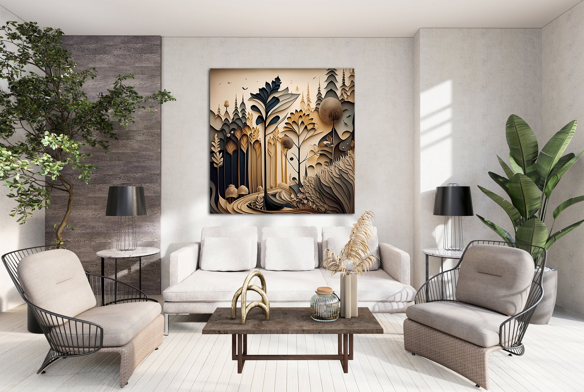 Woodland Serenade is an enchanting forest scene unfolding like a dream,a stylized panorama of towering trees, curvilinear foliage, and layered plant life. With a warm, sepia-toned palette of beiges, charcoals, and earthy browns, the artwork evokes both nostalgia and wonder. The technique strongly resembles digital paper art, where each element feels cut and layered to produce dimensionality. The scene is rich with detail,birds in flight, textured bark, whimsical tree forms,all contributing to a storybook-like charm. This work belongs to the magical realism genre, blending elements of fantasy and nature in a highly decorative, almost fairytale style. Enhance your décor today and bring this unique artwork into your home or office. This beautiful gallery wrapped canvas is the perfect addition to your favorite home or office space. This Original artwork is available only on Wayfair and comes in a variety of sizes allowing you to find what works best within your home or office. Each piece is printed on museum-grade canvas designed to stand the test of time. Durability, image clarity, and color accuracy are our top priorities, as we use archival inks to prevent fading and to preserve as much fine detail as possible with no over-saturation or color shifting. Our professional staff produce the tightest corners without any bubbles, ripples, or bumps, and include pre-installed hanging hardware for easy installation.